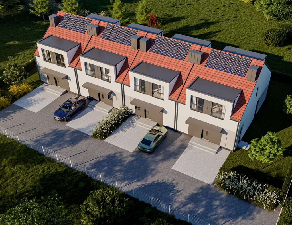 Cztery nowoczesne budynki w zabudowie szeregowej, zaprojektowane z myślą o komforcie i funkcjonalności codziennego życia. Każdy segment stanowi niezależny lokal mieszkalny, wykonany w nowoczesnym standardzie, z dbałością o detale i estetykę wykończenia.