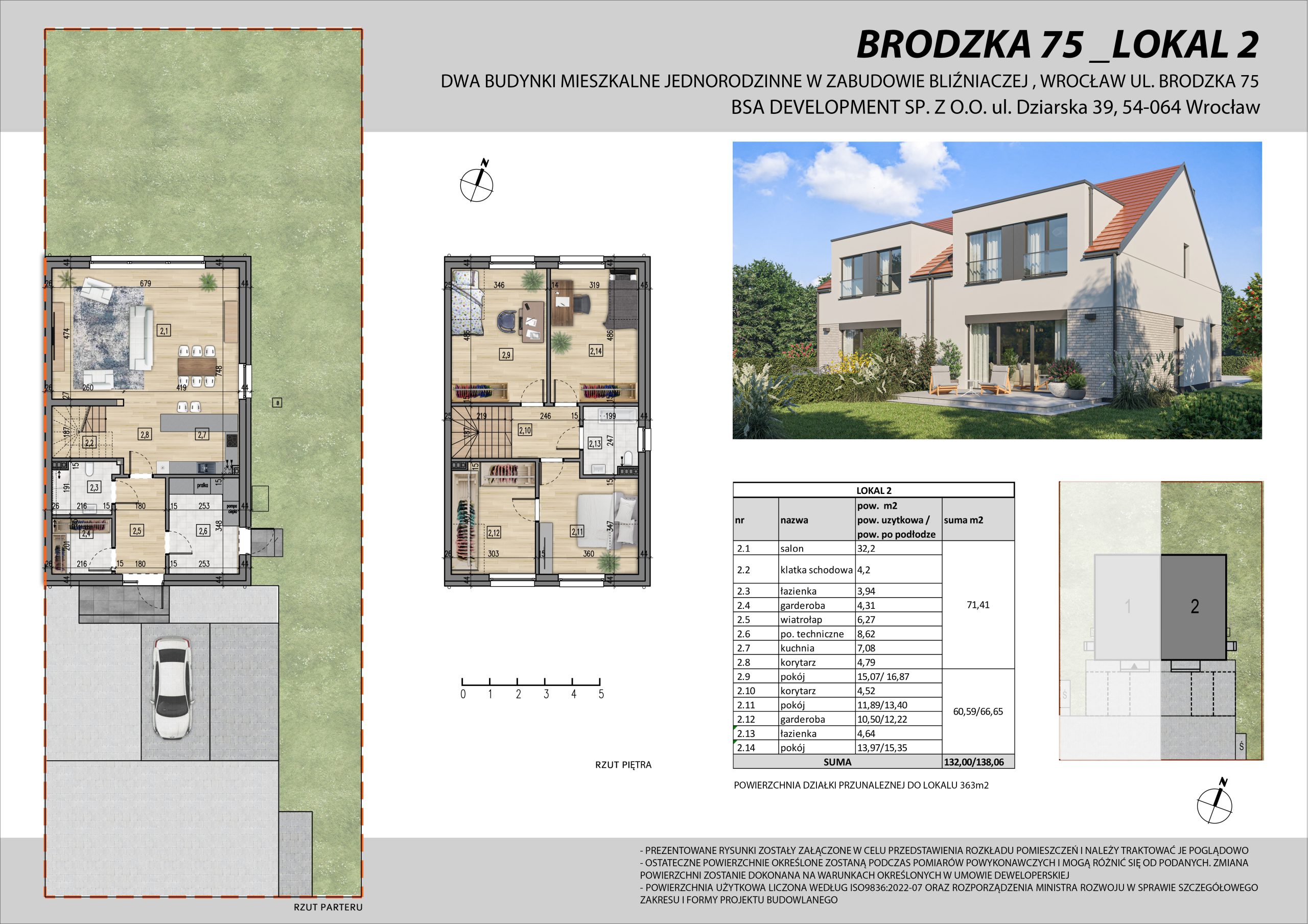 Dwa budynki w zabudowie bliźniaczej, wyróżniające się nowoczesną architekturą i funkcjonalnym układem pomieszczeń. Inwestycja zlokalizowana jest na dwóch oddzielnych działkach o powierzchni 306 m² i 362 m².