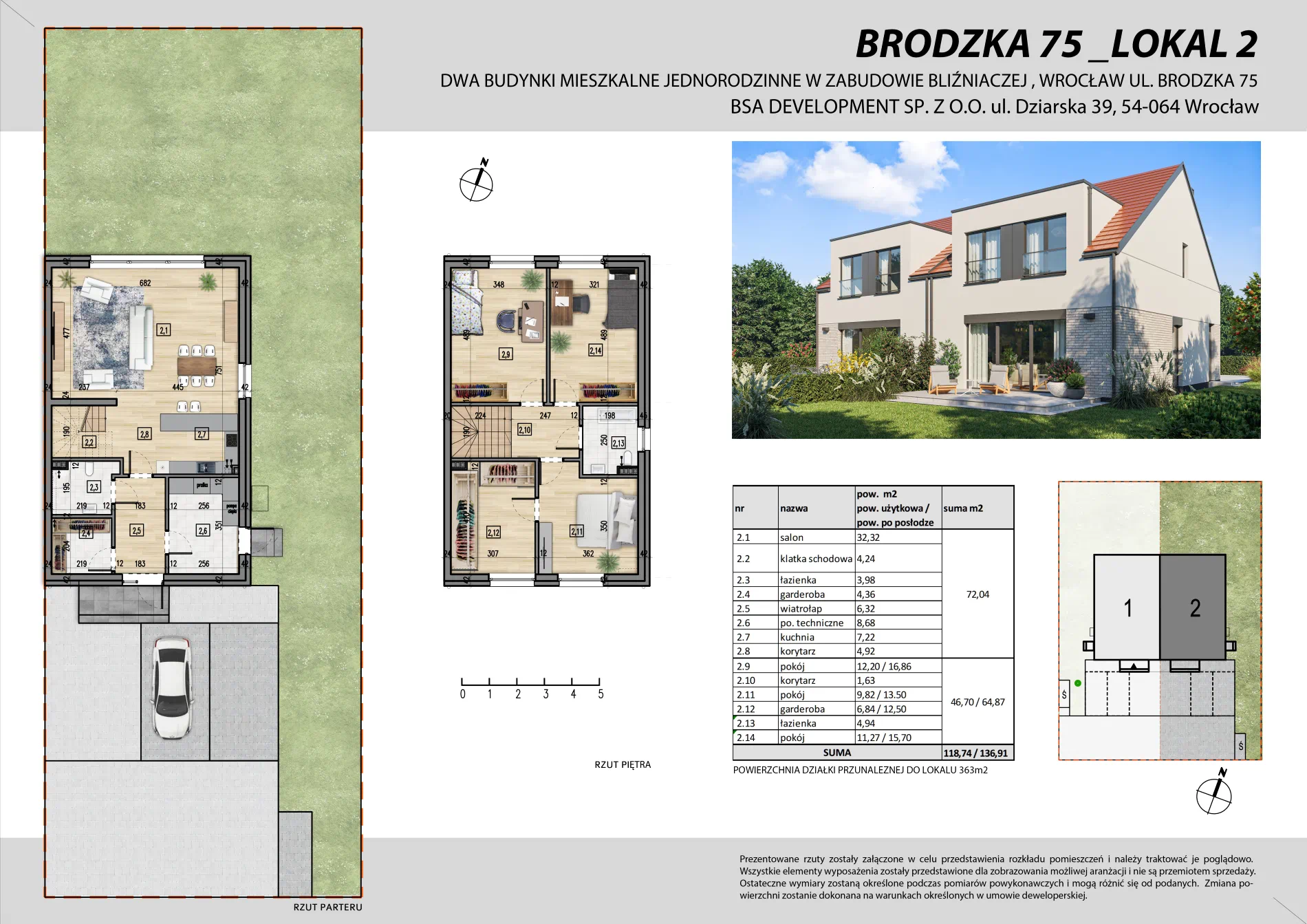 Dwa budynki w zabudowie bliźniaczej, wyróżniające się nowoczesną architekturą i funkcjonalnym układem pomieszczeń. Inwestycja zlokalizowana jest na dwóch oddzielnych działkach o powierzchni 306 m² i 362 m².