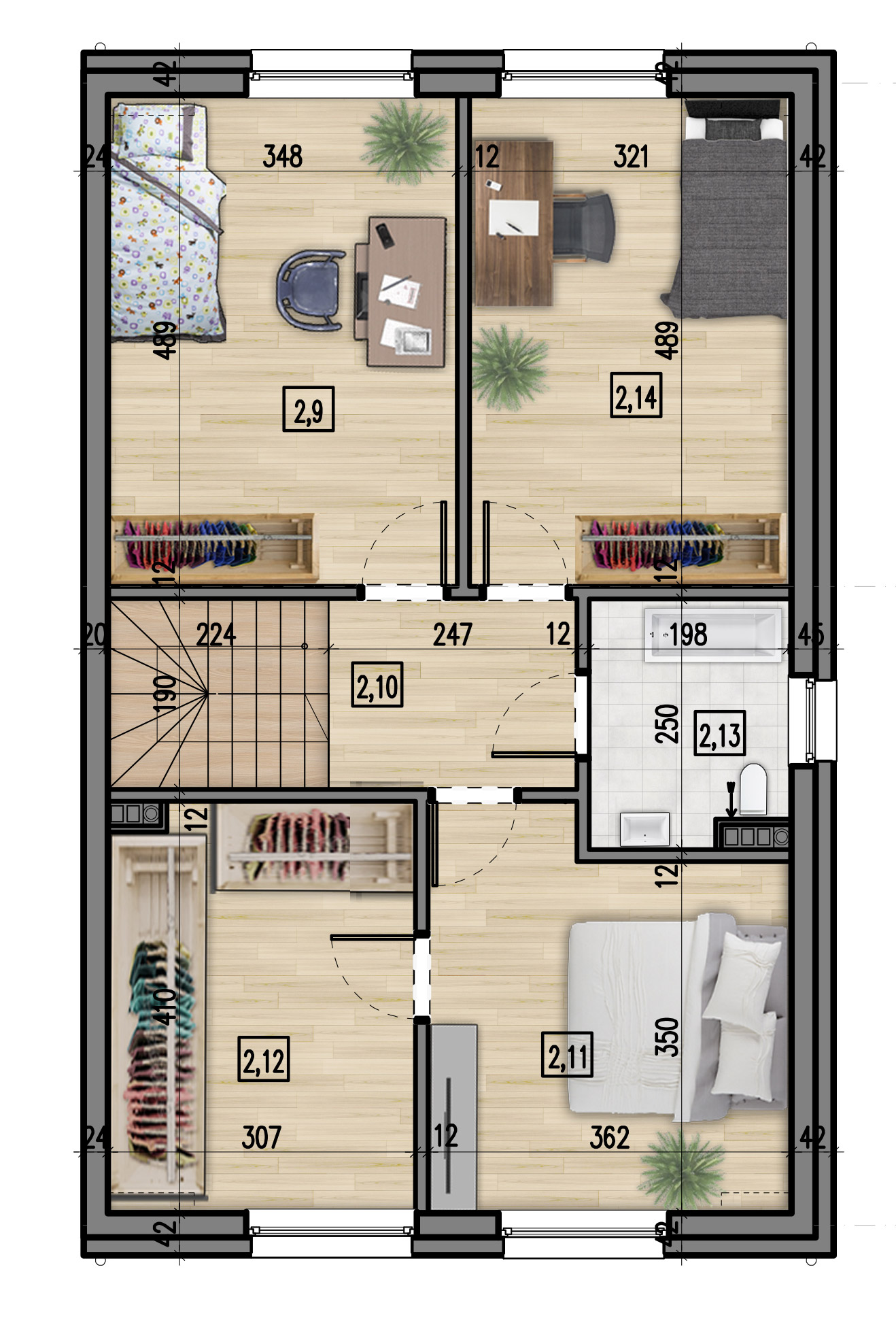 Mieszkania zostały zaprojektowane z myślą o nowoczesnym stylu życia. Funkcjonalny układ wnętrz oraz starannie dobrane materiały wykończeniowe sprawiają, że każde mieszkanie jest przestronne i komfortowe. Dodatkowo, każdy z budynków ma prywatny ogródek, który stanowi doskonałą przestrzeń do wypoczynku, relaksu i spędzania czasu z bliskimi.